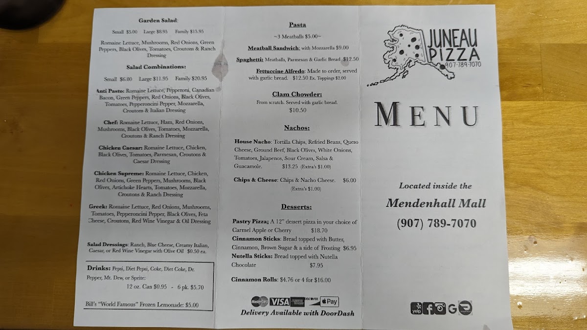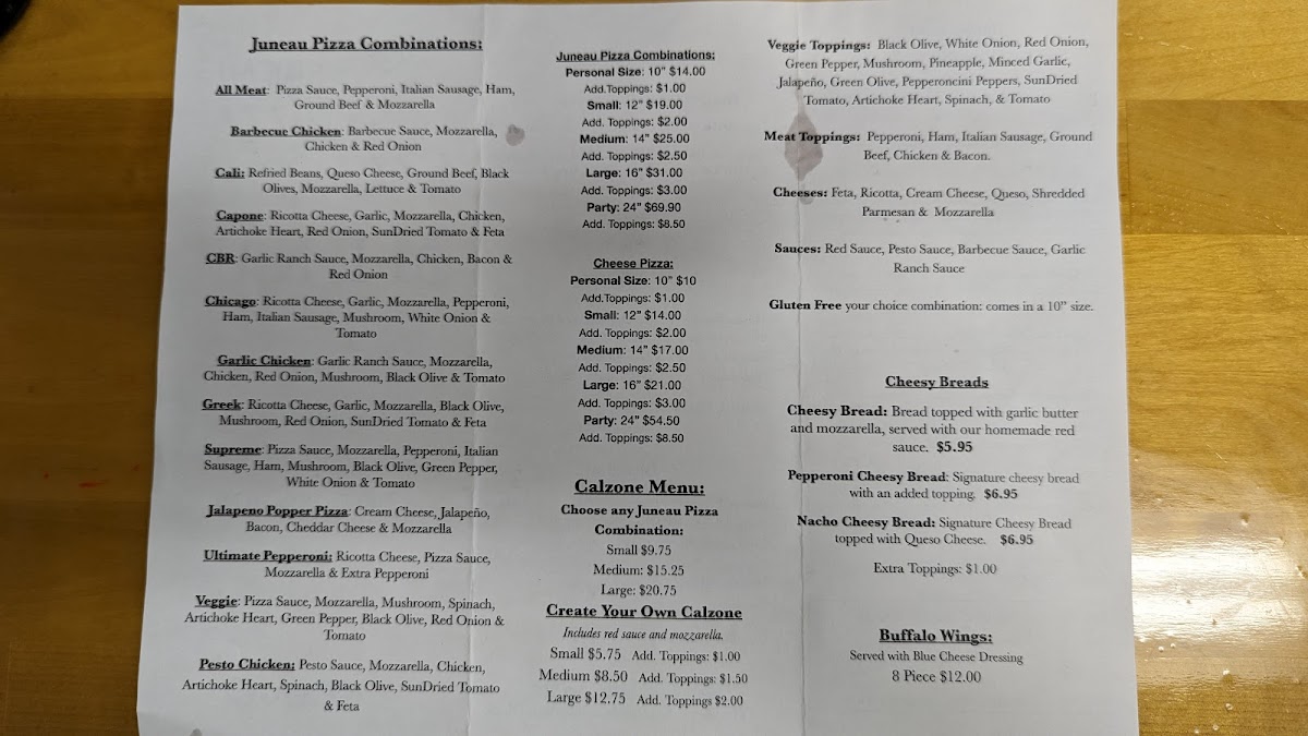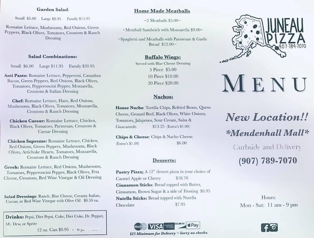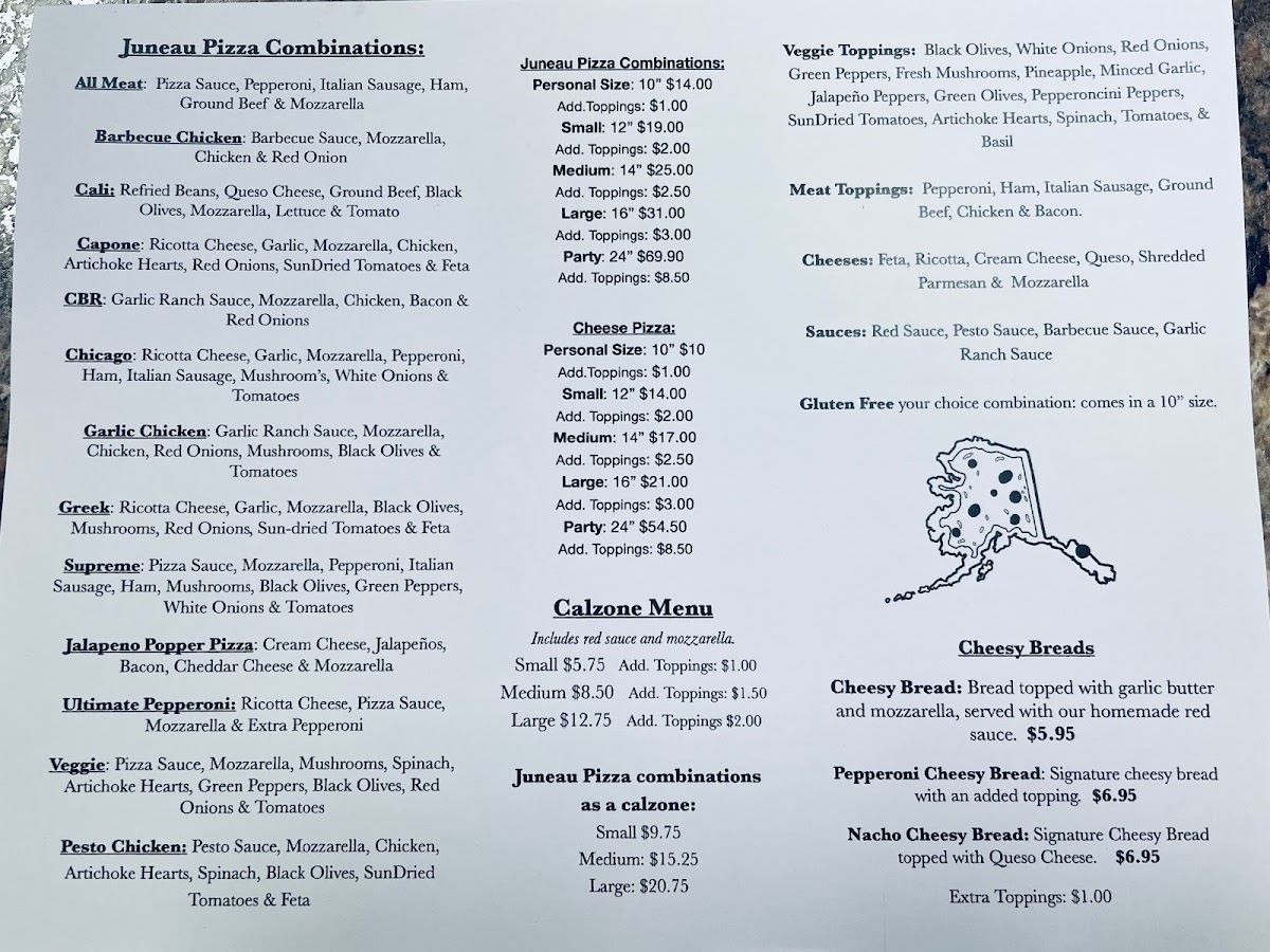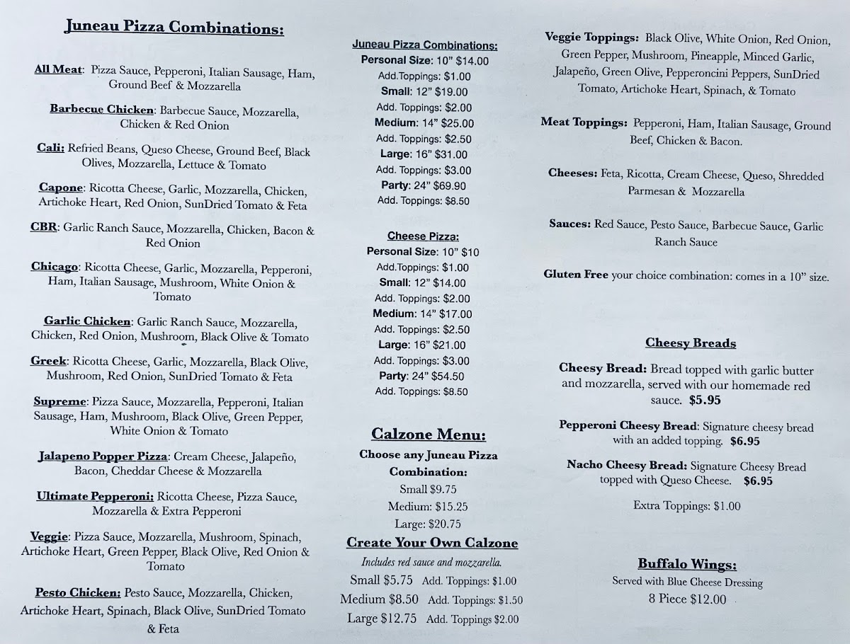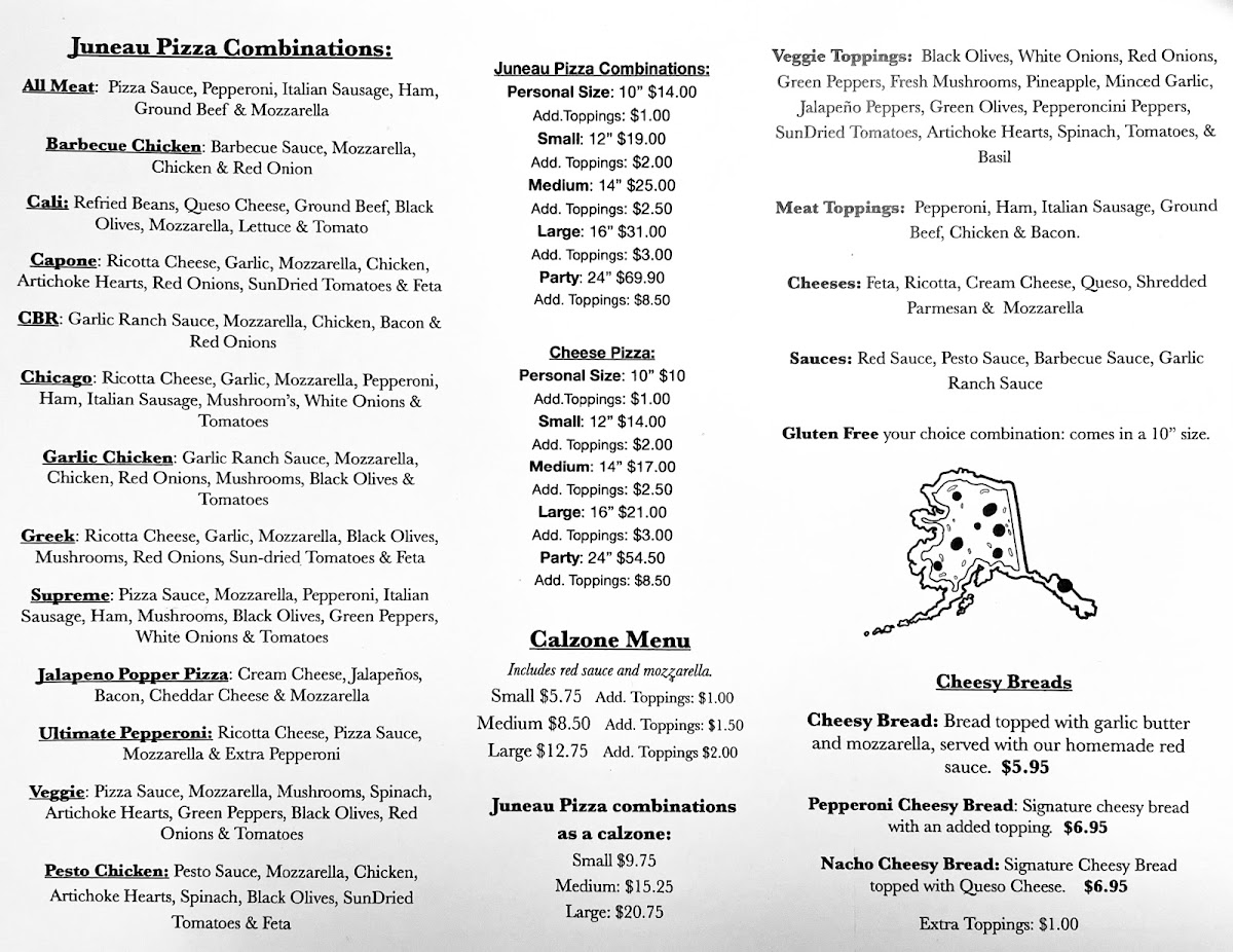 Nestled in the heart of Mendenhall Mall, Juneau Pizza invites you on a mouthwatering journey through our enticing menu. Whether you're a local or just passing through, you'll want to experience our delightful array of specialty pizzas that have people coming back for more. Start your culinary adventure with our classic Pepperoni Pizza, a timeless favorite that perfectly balances savory and spice. For a burst of earthy flavors, try the Mushroom and Sausage—a harmonious blend that's sure to satisfy. Our Veggie Delight is a fresh feast for the senses, loaded with colorful toppings for those craving something light yet fulfilling. And don't miss our Hawaiian Pizza, a sweet and savory masterpiece that brings an unexpected taste of the tropics to the Last Frontier. Each bite is a celebration of flavor, crafted with love and the freshest ingredients. Come and join us at 9105 Mendenhall Mall Rd, Juneau, AK, where great food and warm hospitality await you!